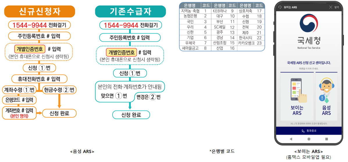 전화하여 신청대리 서비스 요청(본인확인 후 신청가능하며 주민등록번호, 지급받을 본인 명의의 계좌번호 등을 사전준비)